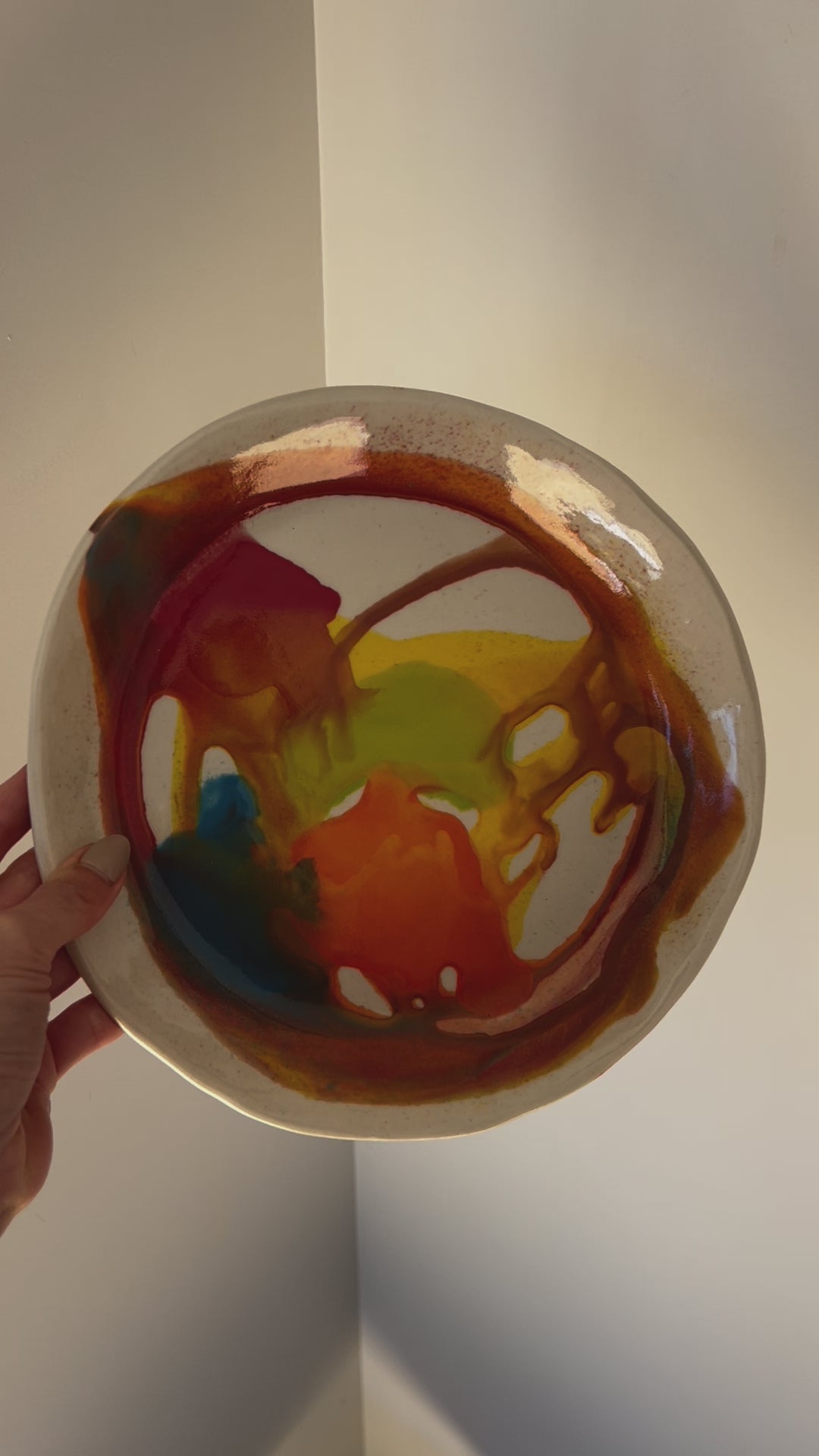 Hand built and hand-glazed in fun colourways. Intended as an art piece to display at your place but can also be used functionally for pasta or salad.
